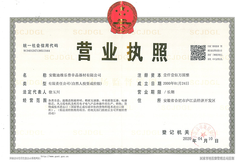 安徽迪維樂普非晶器材有限公司從2013年起至今每年捐贈(zèng)安徽省合肥市廬江縣長(zhǎng)崗中學(xué)和廬江縣水關(guān)中學(xué)助學(xué)金8萬元。